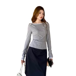 早秋新款胸前微标刺绣字母时尚百搭修身显瘦圆领长袖T恤女上衣女