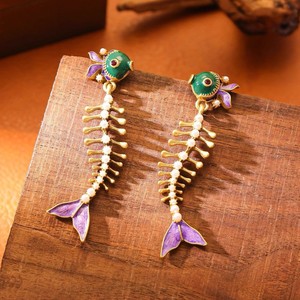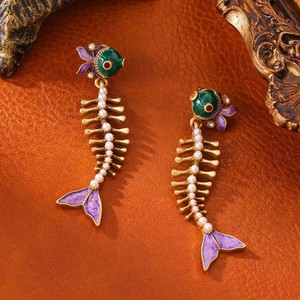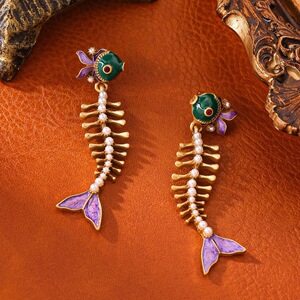 古着设计复古轻奢欧美鱼刺耳钉小众时尚独特个性中古高级感耳饰女