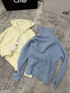 高品质现货Alo 华夫格 高领长袖毛衣女卫衣普拉提针织衫宽松上衣