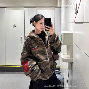 美式迷彩字母连帽开衫卫衣男女款春秋季穿搭潮牌宽松情侣夹克外套
