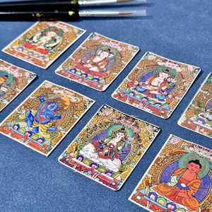 唐卡描金4*5半手绘画芯内心十二生肖八大守护神画布吊坠卡芯