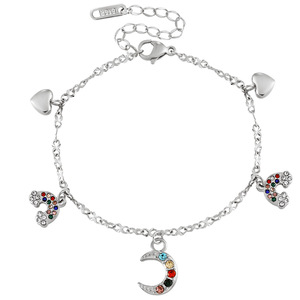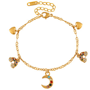 欧美ins风彩色锆石手链女心形月亮彩虹吊坠小众设计钛钢真金手饰