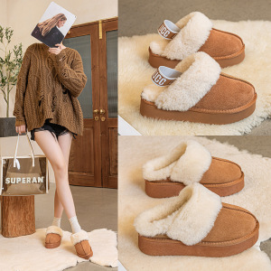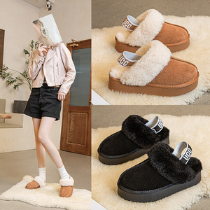 厚底毛绒拖鞋女款雪地靴女士加绒加厚保暖棉鞋春季雪地靴百搭款