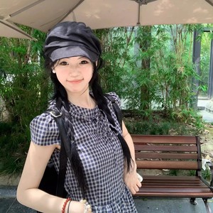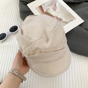 日系薄款亚麻黑色褶皱云朵贝雷帽女夏季透气大头围画家帽子报童帽
