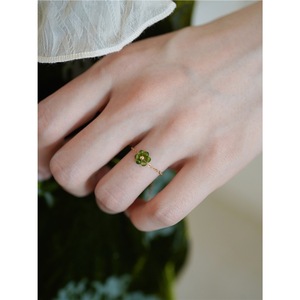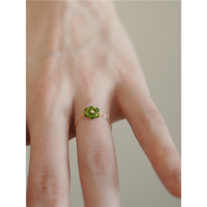 「绿野仙踪」仿天然石绿磷灰戒指金色手工指环小众设计可调节女款