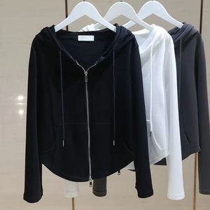 白色连帽恤女长袖2025年秋季新款韩版修身显瘦短款开衫拉链上衣潮