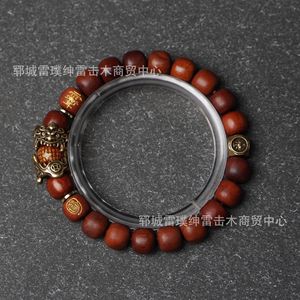 雷击枣木玉化黄铜貔貅四象配金光全文玛瑙珠随身佩戴