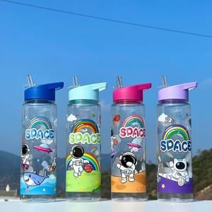 太空人吸管塑料杯弹跳盖便携式卡通旅行跨境电商随行杯儿童礼品