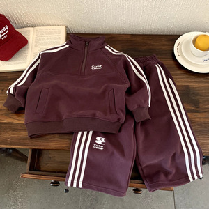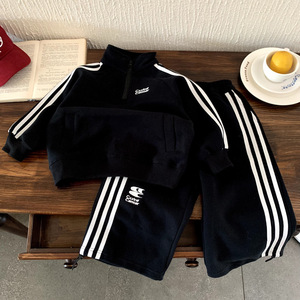 儿童立领卫衣套装秋装2025春秋美式男童三条杠直筒裤女童运动长裤