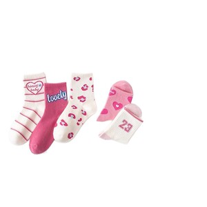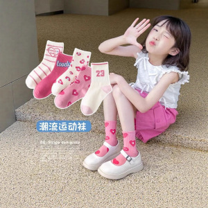 女童袜子春秋字母潮袜儿童袜子中筒袜中大童粉色爱心运动学生棉袜