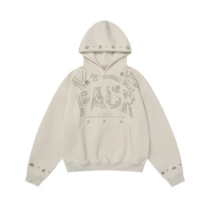 W600美式复古男女款高级感潮流星星刺绣镂空设计男式宽松连帽卫衣