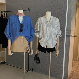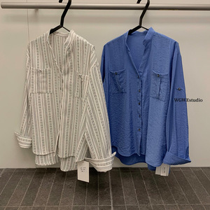 WGWE6764老钱风亚麻立领衬衫宽松气质薄款上衣