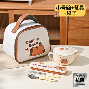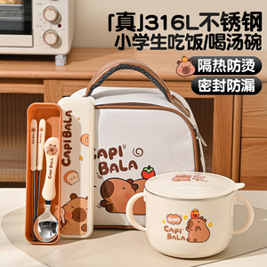 小学生双耳汤碗316不锈钢儿童碗防烫防摔带盖饭碗宝宝专用辅食碗