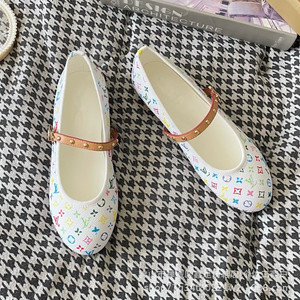 现货驴家25早春新款芭蕾平底鞋女樱花金属扣单鞋一字带玛丽珍女鞋