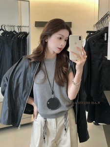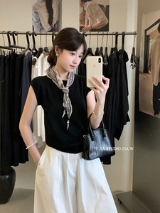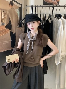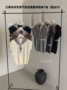 正肩气质圆领短袖毛衣女T恤秋季新款韩系简约修身小衫打底针织衫