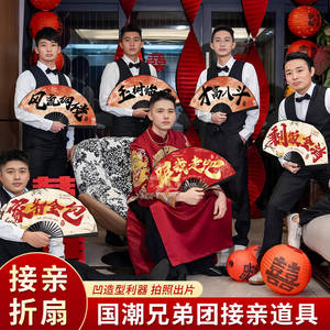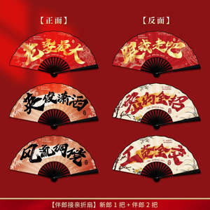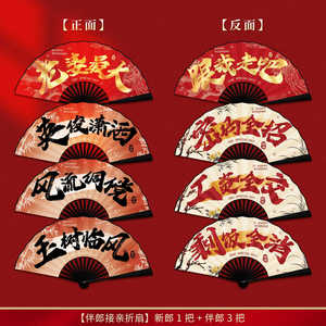 伴郎扇子结婚新郎团折婚礼接亲拍照道具中式喜扇迎亲游戏用品大全