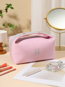新款手提帆布化妆包高级分区便携化妆品收纳包透气帆布旅行收纳袋