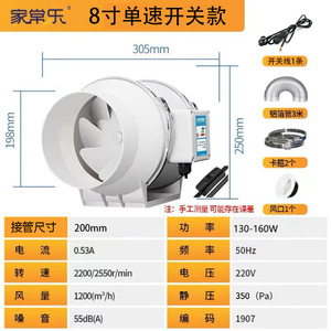 【8寸单速开关款】铜芯电机-200口径送配件