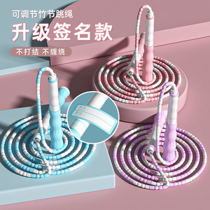 儿童竹节跳绳学生初学考试体育专用跳绳可调节可签名跳绳用品
