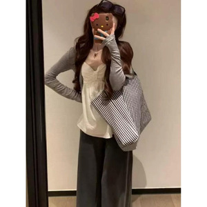 100克棉吊带200克莫代尔外衫针织长袖开衫上衣白色上衣