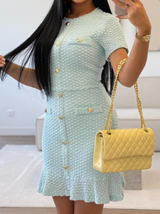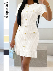 迪芸欧美气质优雅纽扣短袖长裙子连衣裙女装2025秋冬亚马逊独立站