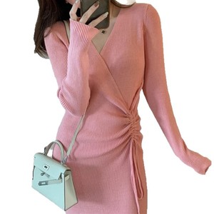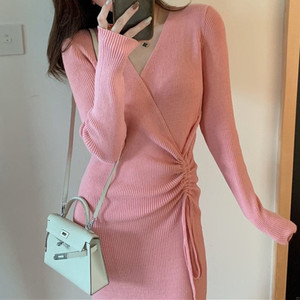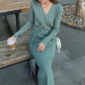 法式优雅设计感v领针织连衣裙女装秋冬新款修身显瘦内搭毛衣长裙