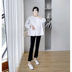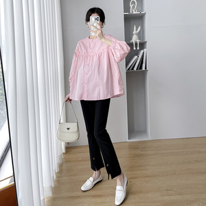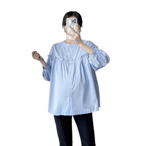 孕妇装秋季立领时尚纯棉衬衫宽松休闲孕妇上衣