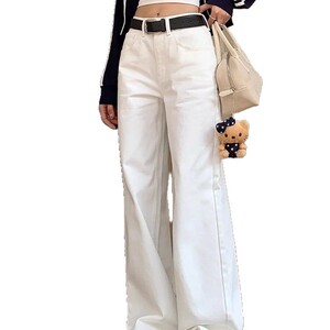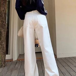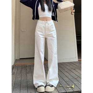 美式直筒阔腿裤女2025年春新款百搭经典白色高腰显瘦拖地牛仔裤子