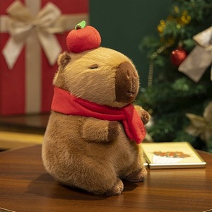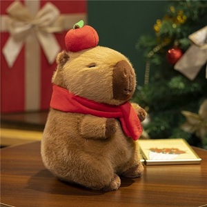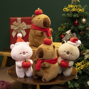 圣诞卡皮巴拉卡皮巴拉苹果款圣诞帽粉色圣诞帽棕色动物如图短毛绒