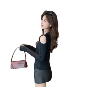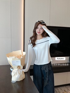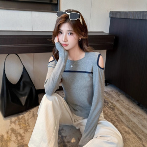 长袖秋冬内搭修身灰色欧货2025洋气百搭显瘦露肩上衣打底衫t恤女
