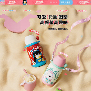 卡通儿童双饮保温杯316不锈钢户外便携大容量水壶小学生专用水杯