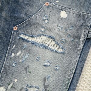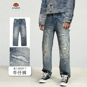 25年秋季新品街头破洞设计标准直筒男士牛仔裤做旧水洗泼墨垂感男