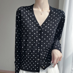 莱赛尔针织波点v领开衫女2025开春收腰减龄百搭薄款时尚女装小衫