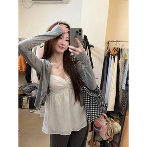 100克棉吊带200克莫代尔外衫针织长袖开衫上衣白色上衣