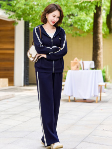 妈妈秋装时尚套装2005新款中年休闲连帽外套春秋宽松运动服两件套
