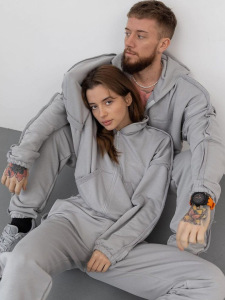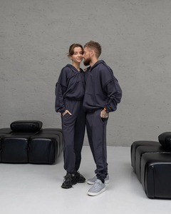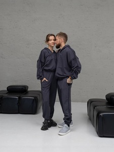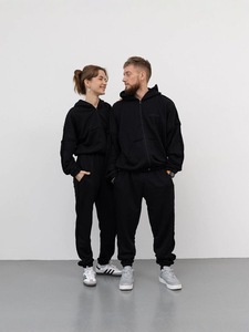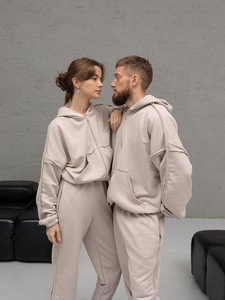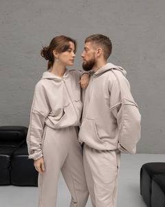 2025跨境欧美秋冬纯色连帽卫衣情侣潮牌休闲套装