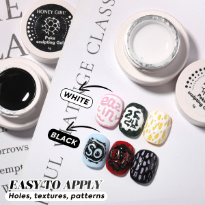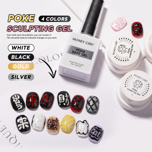 跨境热销创意戳戳胶美甲彩绘洞洞胶底胶黑白金银色蕾丝纹路甲油胶