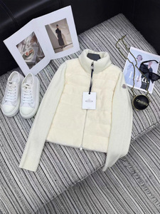 羊卷小颗粒拼接羊毛针织袖立领羽绒服外套