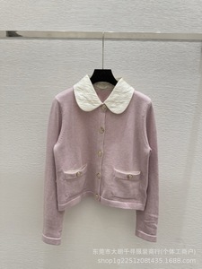 25早秋新款南油高定CH小香风口袋金属纽扣拼色翻领针织长袖开衫女
