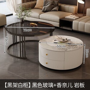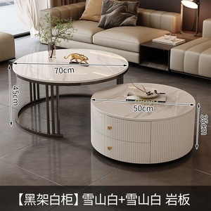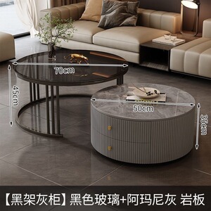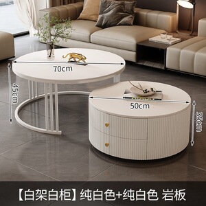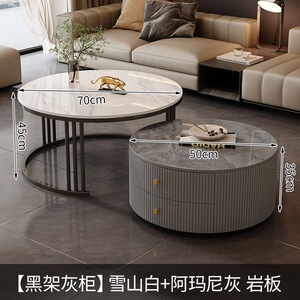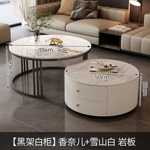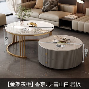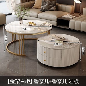 茶几轻奢简约现代客厅家用小户型北欧边几大理石岩板圆形小茶几桌