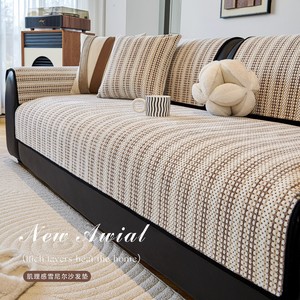 雪尼尔沙发垫四季通用2025新款一片式直排皮沙发坐垫固定防滑盖布