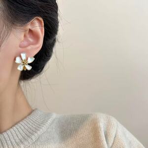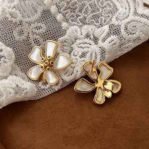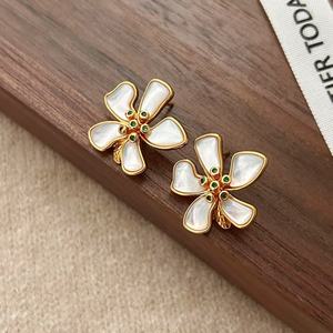 超仙温柔甜美贝母耳钉女2025年新款潮轻奢高级感花朵耳环银针耳饰