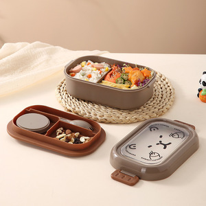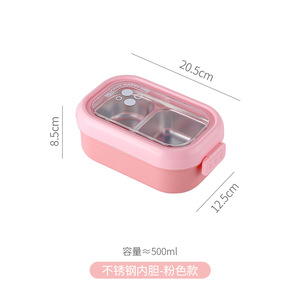 学生日式分格304不锈钢饭盒 上班族塑料午餐便当盒带餐具沙拉餐盒