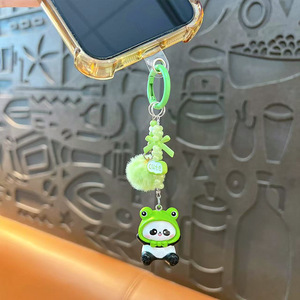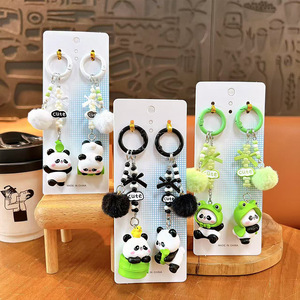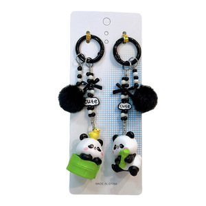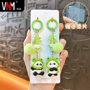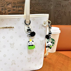 新款情侣熊猫串珠手机链钥匙扣可爱包包挂件手机壳配饰小礼品批发