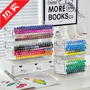 马克笔收纳盒大容量透明画笔架子水彩笔女孩儿童笔筒多层桌面笔插