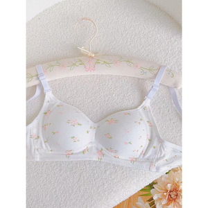 小白碎花 轻薄款无痕内衣女小胸聚拢显胸小无钢圈学生文胸罩