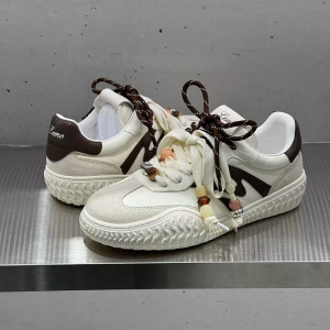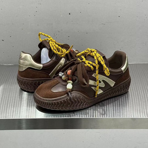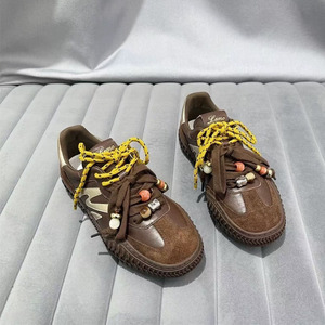 东莞厚街~轻奢2025年新款双色绑带串珠休闲德训鞋平底百搭阿甘鞋