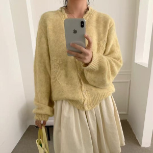 韩系温柔风立体勾花针织开衫女2025秋冬新款软糯甜美花边毛衣外套