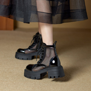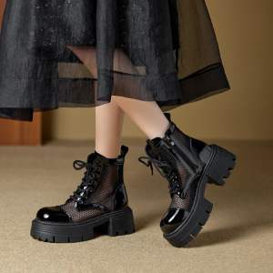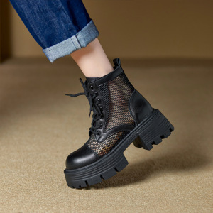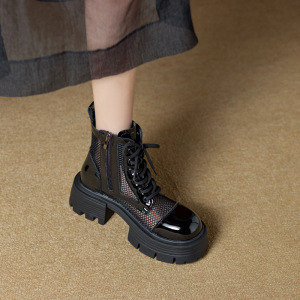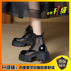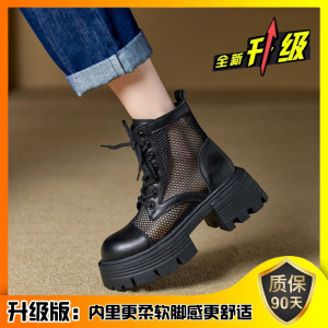 夏季薄款马丁靴女2025年新款凉靴厚底百搭小个子网纱镂空短靴成年