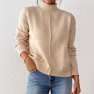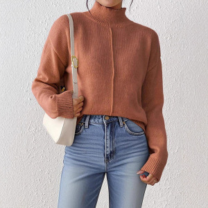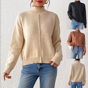 外贸毛衣跨境新款女式休闲上衣欧美秋冬纯色半高领套头打底衫毛衣